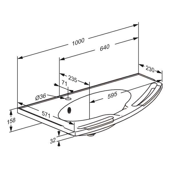 • MATRIX ANGLE DEEP sejlformet vask, 1000 x 571 x 158 mm, højrevendt, med aflægningsplads og to integrerede antracitgrå håndgreb i fronten, hanehul Ø36 mm og overløbshul. Inkl. bundventil. Vasken er forsynet med drypbakke, der forhindrer vand i at løbe ned på brugeren, og med hulkel, der forhindrer vand i at løbe bag ved eller ud over siderne af vasken.