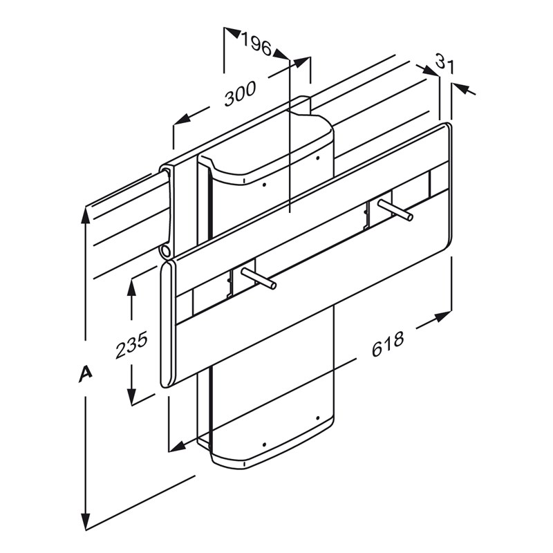 PLUS vaskophæng med håndbetjening, elektrisk højderegulérbart og manuelt sideværts regulérbart