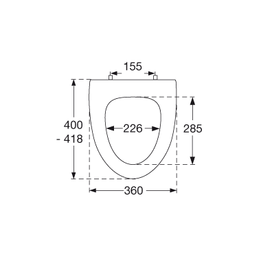 Standard toiletsæde, inkl. fast beslag i rustfrit stål