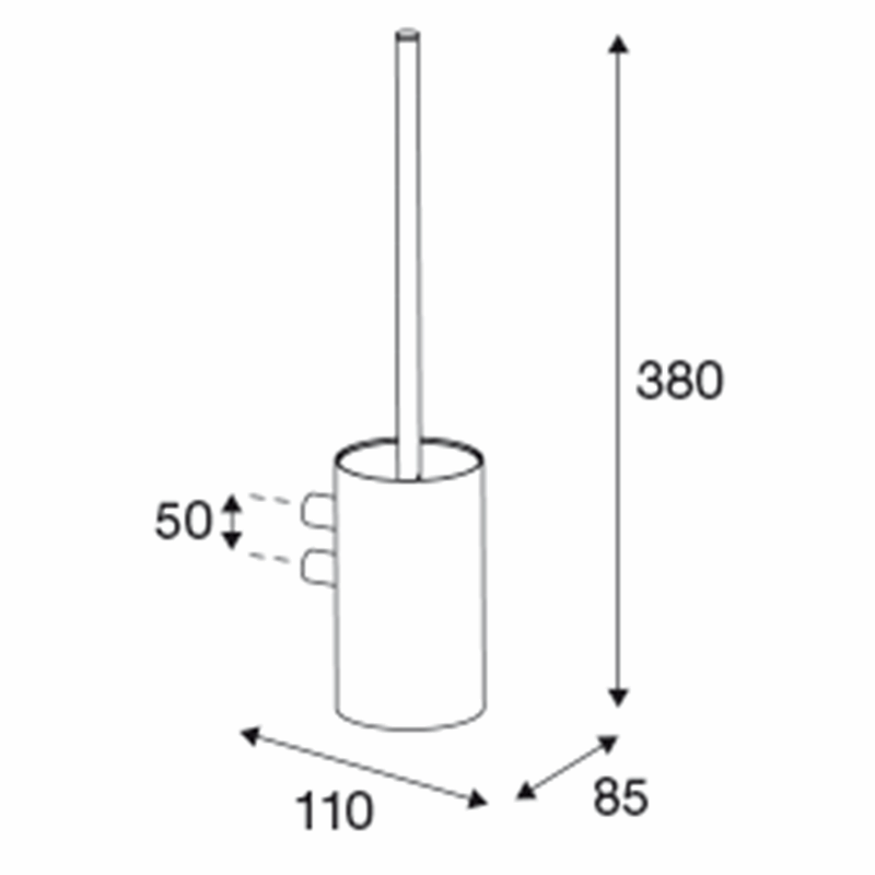 Elegant toiletbørste til ophæng på væggen. Giver ekstra plads på gulvet