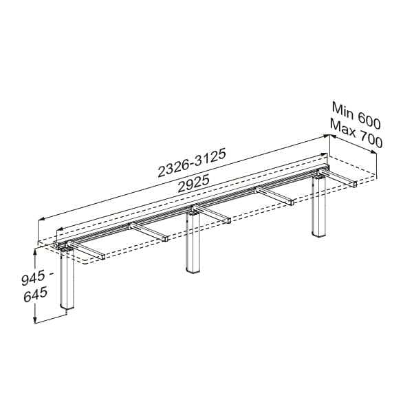 INDIVO Pack Large, Hubeinheit für Arbeitsplatte 2326-3125 mm