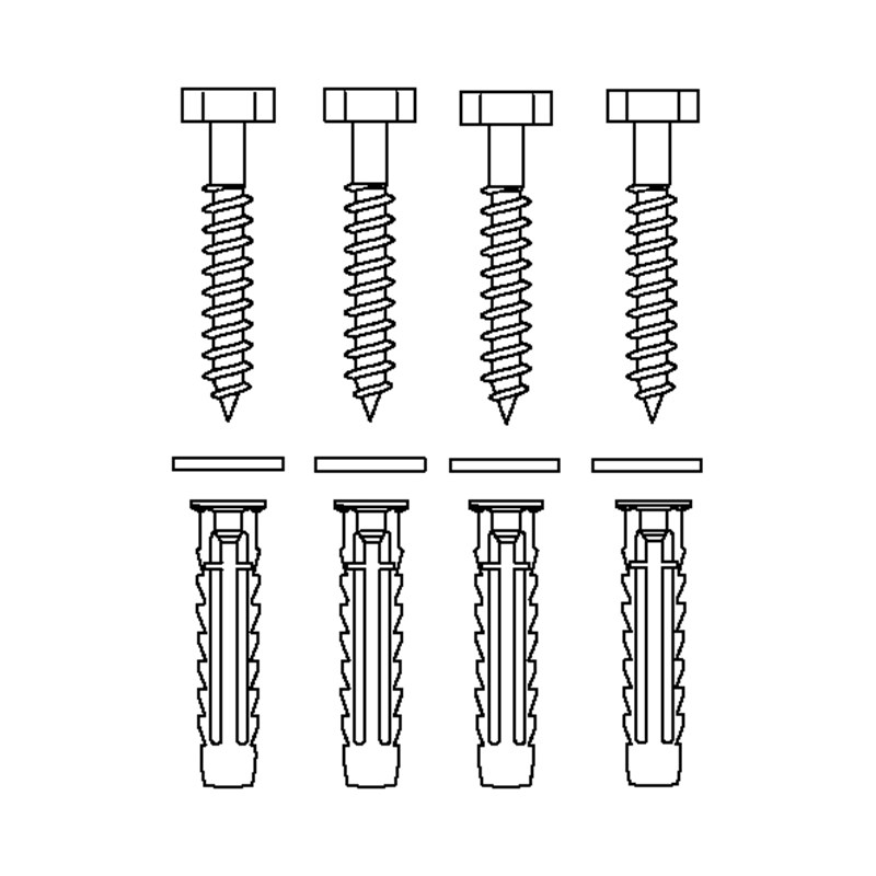 • Befestigungsmaterial, 4 Stck. Schlüsselschrauben Ø8 x 70, Dübeln SX10, für massives Mauerwerk.