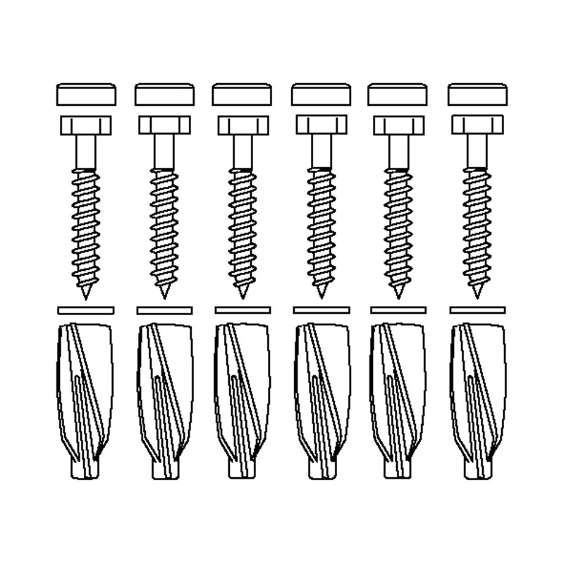 • Befestigungsmaterial, 6 Stck. Schlüsselschrauben Ø10 x 70, Dübeln GB14, für Porenbeton