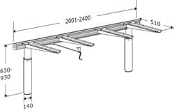 Manuelle Hubeinheit für Arbeitsplatte mit Handkurbel Inkl. 4 Träger Länge 2001-2400 mm. 300 mm höhenverstellbar. Montageschrauben für massives Mauerwerk sind im Lieferumfang enthalten. Gewünschte Länge der Hubeinheit bitte bei Auftragserteilung angeben