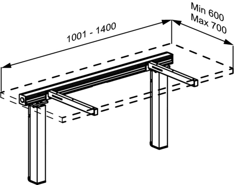 INDIVO Hubeinheit für Arbeitsplatte 1001-1400 mm