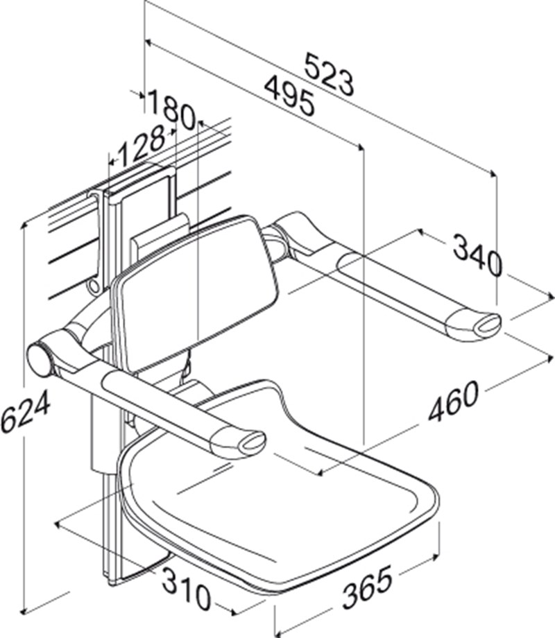 • PLUS Duschsitz 310, mit Rückenlehne und Armlehnen.
