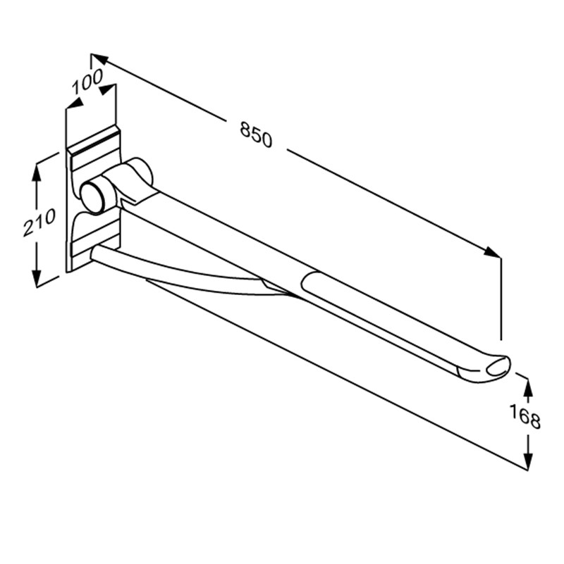 Gesamtlänge: 850 mm. Festeinbau. Hochklappbar.
