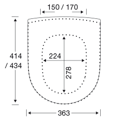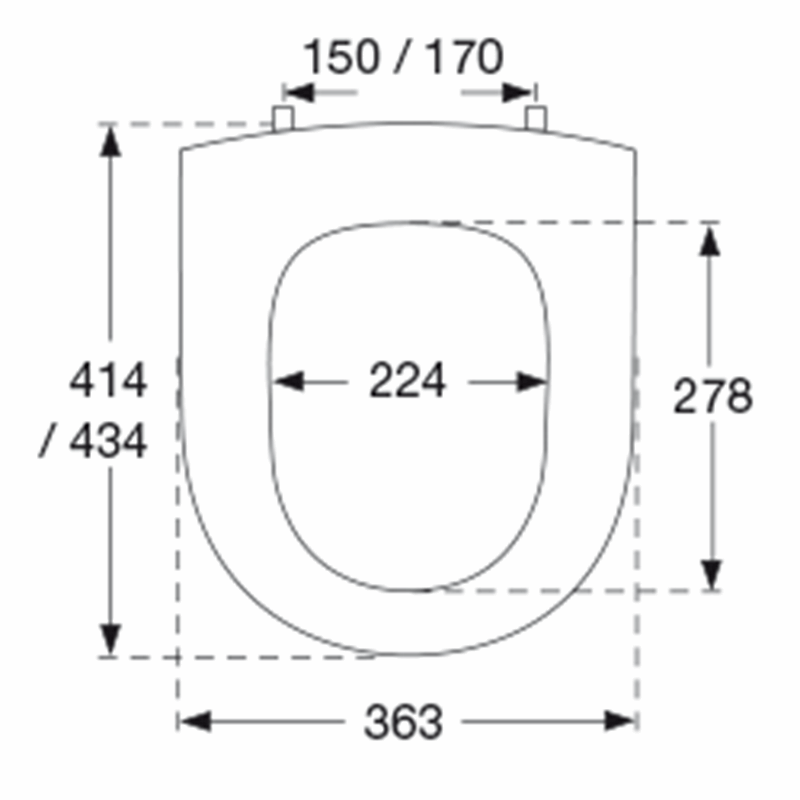 Standard-WC-Sitz mit antibakterielle Wirkung, mit Spezialscharnier mit durchgehender Scharnierwelle aus Edelstahl