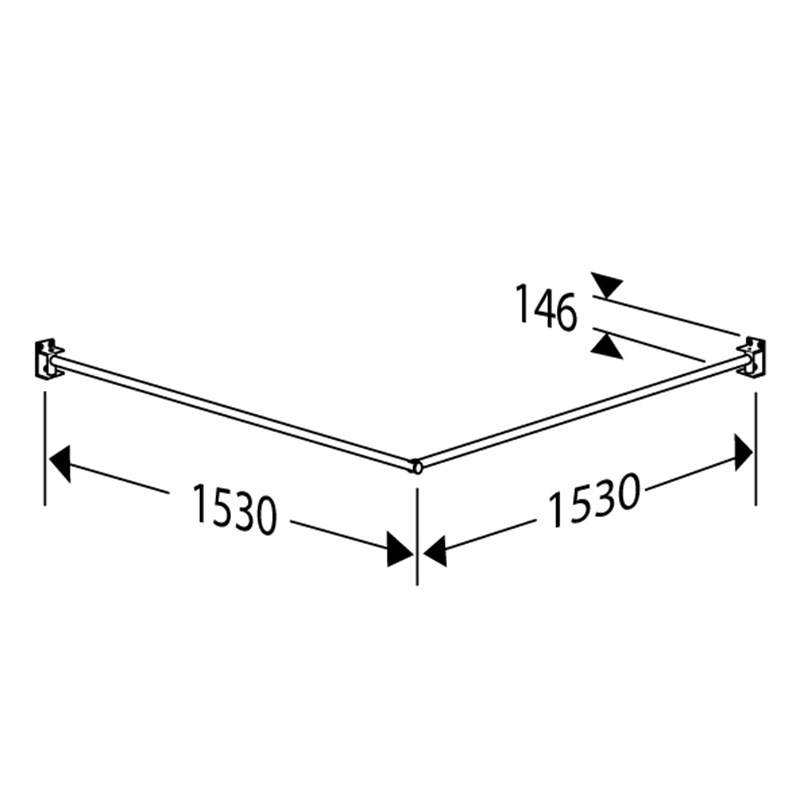 Schwenkbare Duschvorhangsstange, 1530 x 1530 mm