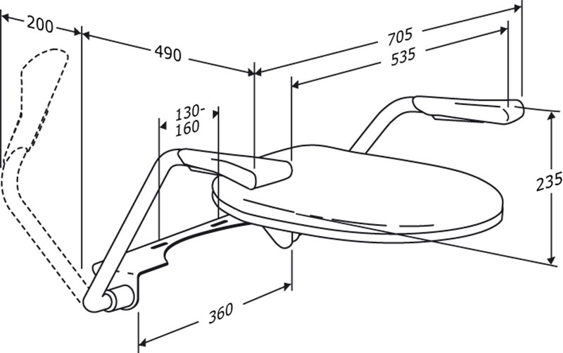 Ausladung: 490 mm von Hinterkante der Toilette.