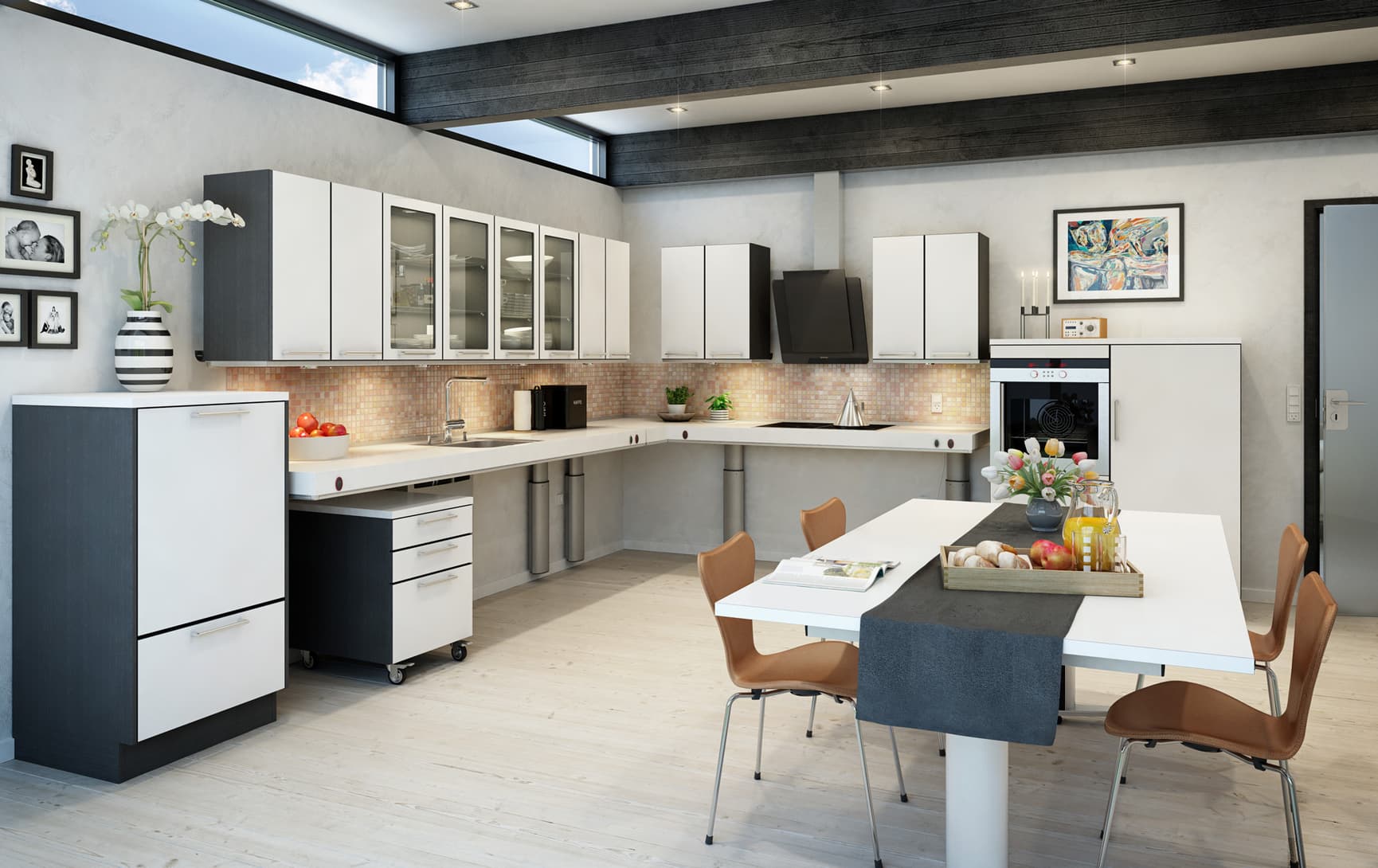 Eine höhenverstellbare Küche bietet Platz für alle. Sowohl stehende als auch sitzende Personen können die Küche benutzen und an den Aktivitäten am Tisch teilnehmen. Dies gilt unabhängig davon, ob es sich um die Gestaltung einerKüche in Pflegeeinrichtungen, inPrivathaushalten, inSchul- und Ausbildungsküchen oder im betreuten Wohnen handelt.