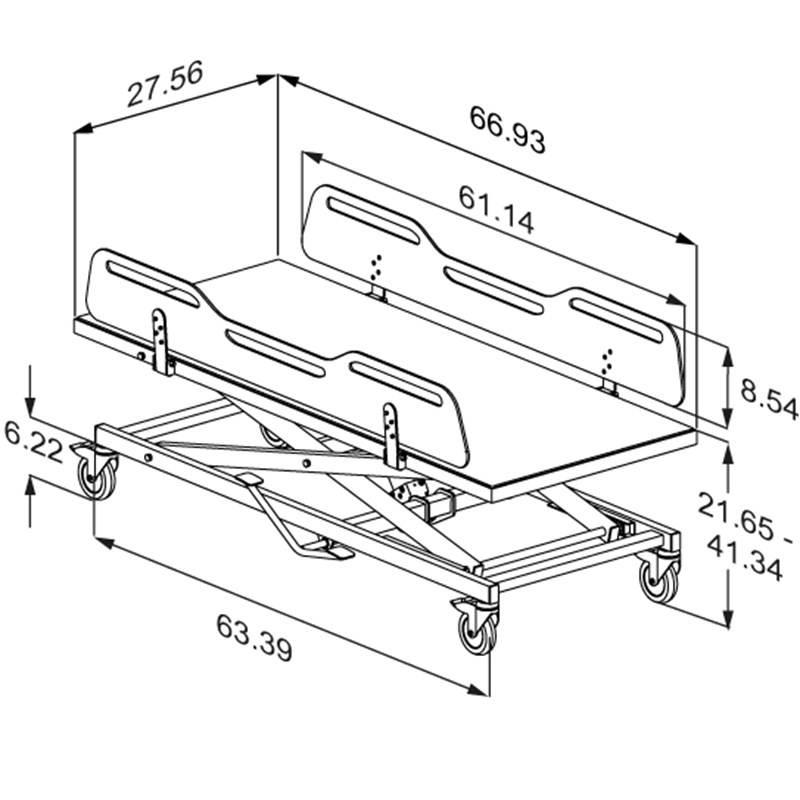 • The ergonomically designed safety rails have a practical lower central section, which provides better access and work environment for the carer while transferring, changing and dressing the user.