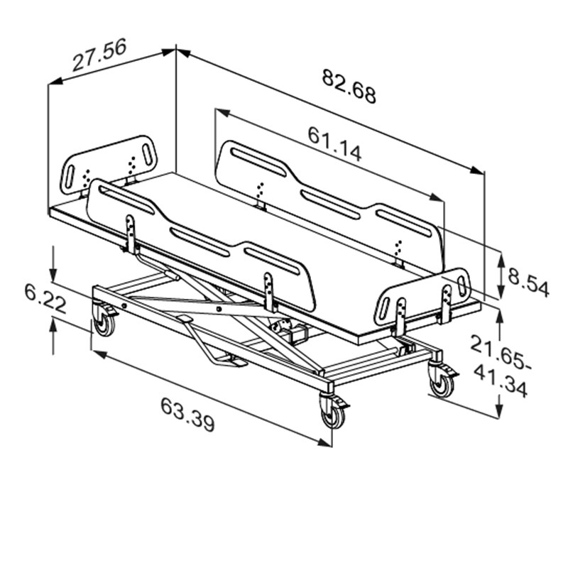 • MSCT 4 shower change trolley, 27.6" x 82.7", four fold-down sides.