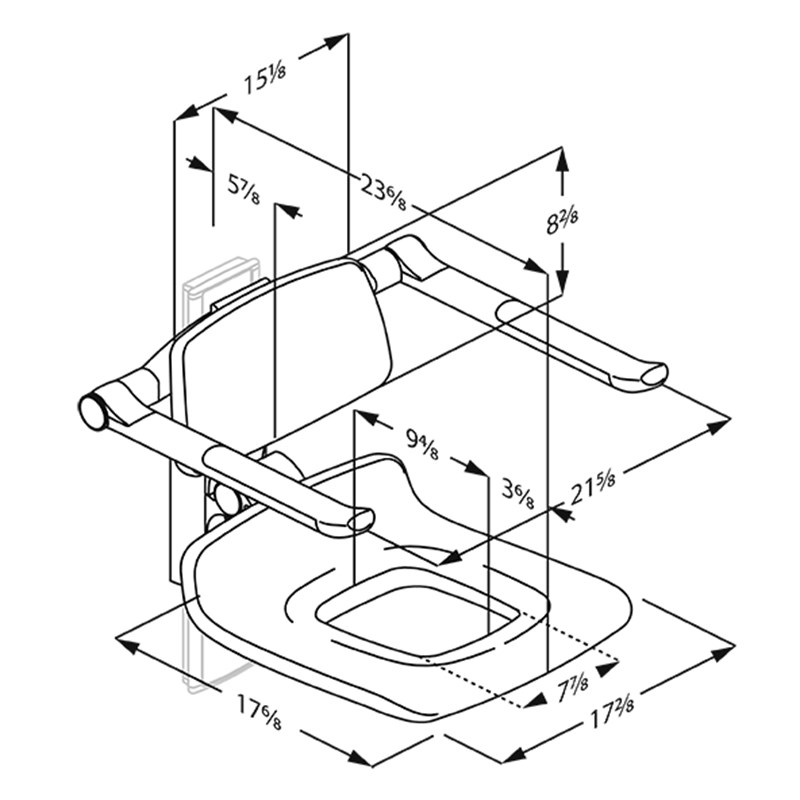 • PLUS shower seat 450 with aperture, with back- and armrests. Manually height adjustable by 7.7", without the use of tools. Armrests are independently height adjustable. The seat and the armrests are foldable.