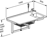 Changing table, 800 x 1400 mm, electrically height adjustable, with sanitary appliances and mixer tap with pull-out spout