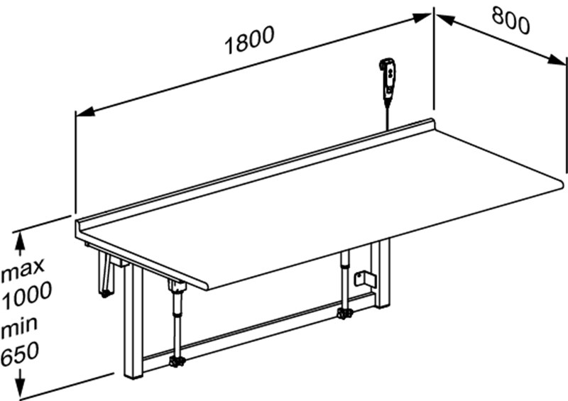 Can be height adjusted 350 mm from 650 to 1000 mm.
