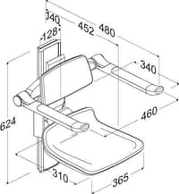 Can be height adjusted 250 mm. Seat and armrests are foldable.