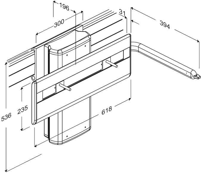 • PLUS wash basin bracket with lever control, height adjustable by 300 mm (stepless) with gas cylinder and manually sideways adjustable.