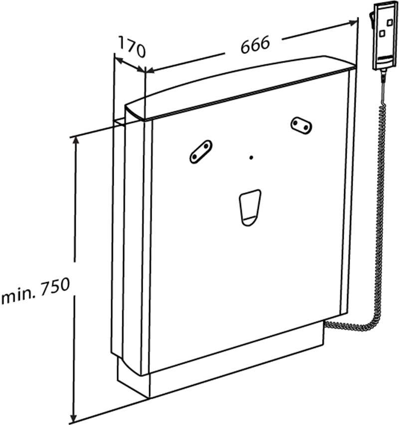 SELECT wash basin bracket, wall-mounted with floor support, electrically height adjustable with wired hand control