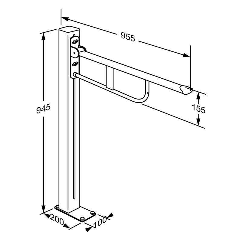 Length: 955 mm. Can be height adjusted 670 mm from 215 to 885 mm.