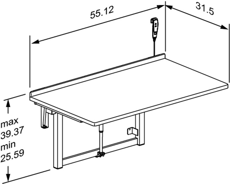 Changing table, 31.5" x 55.1", electrically height adjustable, foldable