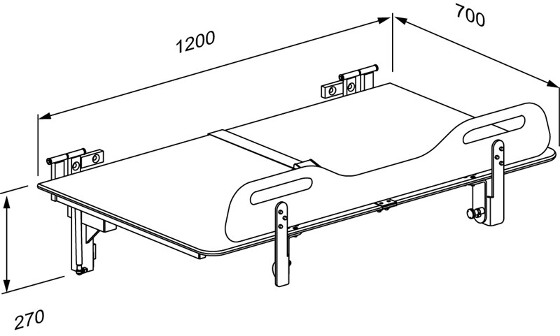 The ergonomically designed safety rail has a practical lower central section, which provides better access and work environment for the carer while transferring, changing and dressing the user.