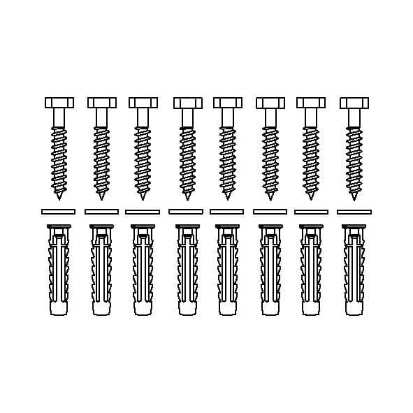 • Mounting kit, 8 coach screws Ø8 x 70, plugs SX10, for brick wall