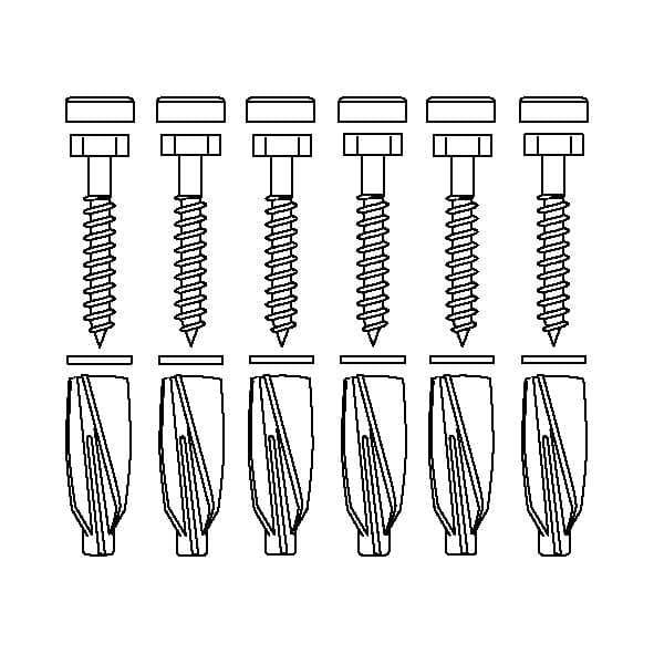 Mounting kit, 6 coach screws Ø10 x 70, plugs GB14, for aerated concrete.