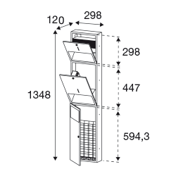 • Stainless steel built-in module consisting of a soap dispenser with touch-free operation, a paper dispenser with space for approx. 250 paper towels and an approx. 11 liter waste bin with removable mesh basket. The waste bin is accessible through a lockable door. The soap dispenser is designed for a standard 950 ml disposable bottle of regular liquid soap or hand lotion. Lockable front flap with drop protection for easy refilling and inspection openings to indicate fill level. The waste container has a self-closing, flame-retardant disposal flap and the cylinder locks are operated with one key.