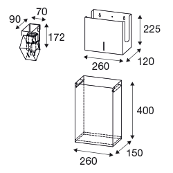 Pressalit Public Premium Set with waste bin, paper dispenser and soap dispenser, brushed steel
