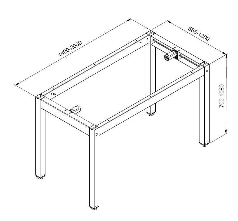 Elektrisk løfteenhed til fritstående bord med 4 ben.