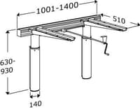 Manuel løfteenhed til bordplade, med håndsving Inkl. 2 bæringer Længde fra 1001-1400mm. 300 mm højderegulerbar. Inkl. monteringsbolte til massiv mur.. Ønsket længde angives ved bestilling.
