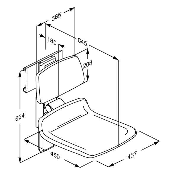 • PLUS douchezitting 450 met rugsteun. Handmatig in hoogte 380 mm verstelbaar en zijwaarts verstelbaar, zonder het gebruik van gereedschap. De armleuningen zijn apart in hoogte verstelbaar. De zitting en armleuningen zijn opklapbaar.