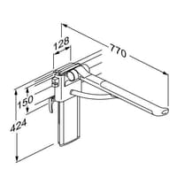 • PLUS toiletsteun met veer. Totale lengte 770 mm, ergonomisch gevormd om een duidelijk einde aan de toiletsteun te geven. Linkshandige bediening. In hoogte 240 mm verstelbaar en zijwaarts verstelbaar. Opklapbaar en afneembaar. Antraciete afdekplaat voor verticale wandrails.
