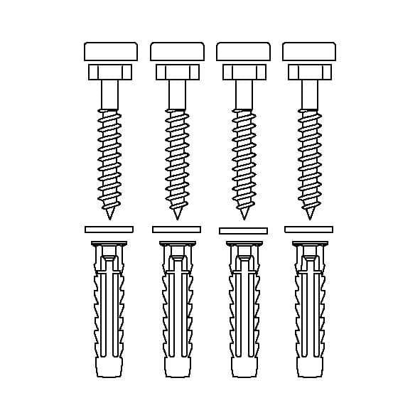 Bevestigingsmateriaal, 4 schroeven Ø10 x 70, pluggen SX12, met grijze schroefafdekkingen, voor massieve muren.