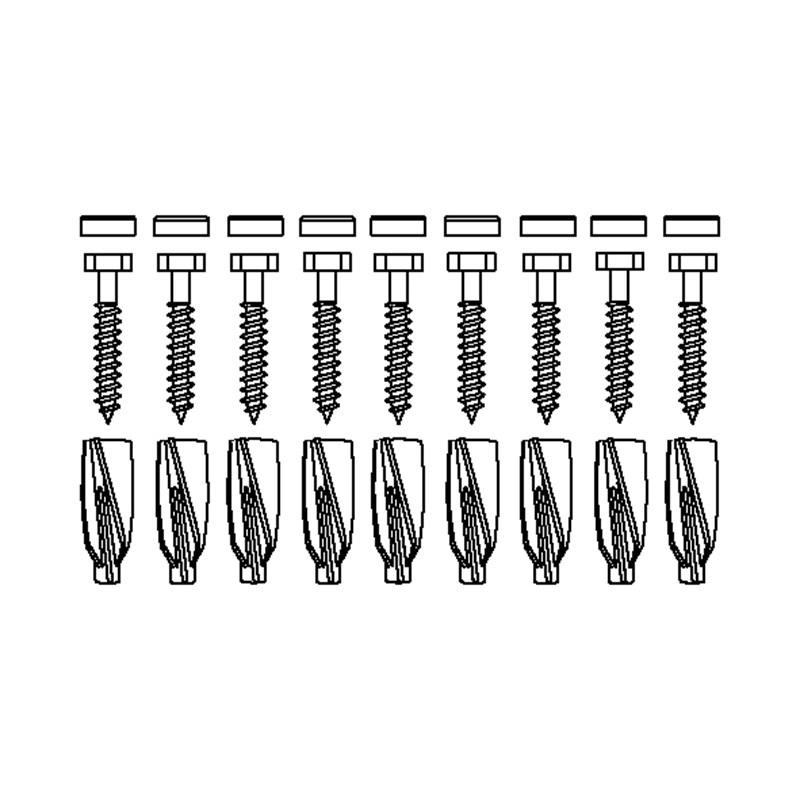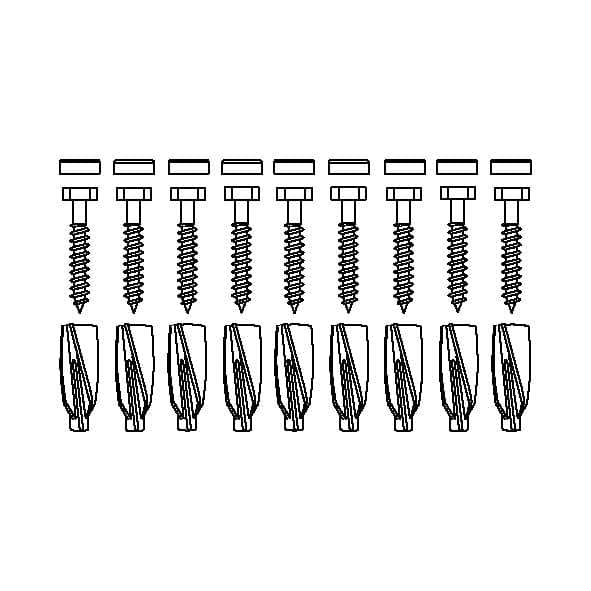 Bevestigingsmateriaal, 9 zeskantschroeven Ø10 x 70 - pluggen GB14, voor cellenbeton
