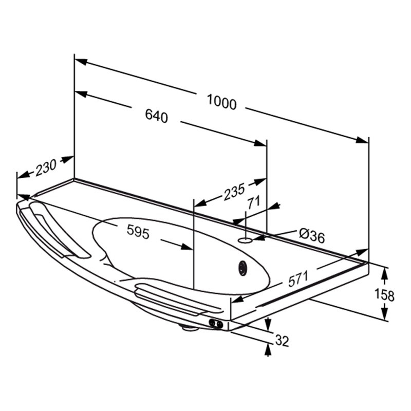 MATRIX ANGLE DEEP wastafel met overloop, links afgerond, voor elektrisch bedienbaar wastafel muurframe