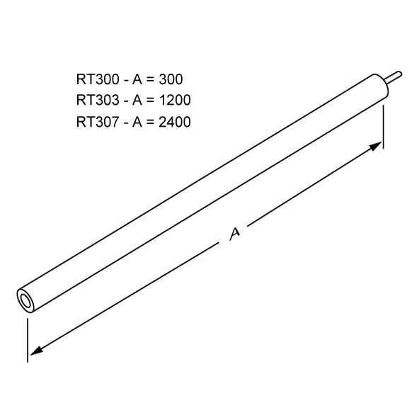 Lengte 300 mm, diameter 33 mm.