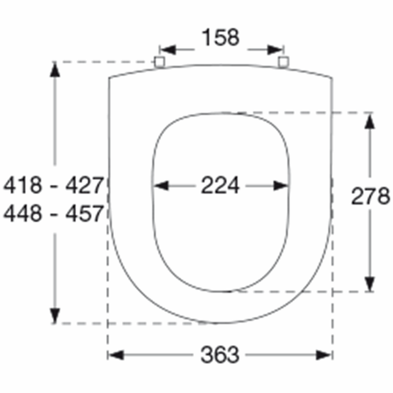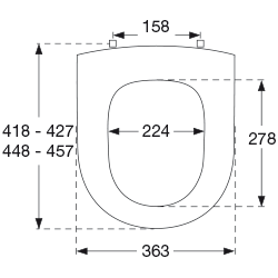Standaard toiletzitting met antibacteriële werking, zonder deksel, incl. universele scharnieren met doorlopende pen in roestvrij staal