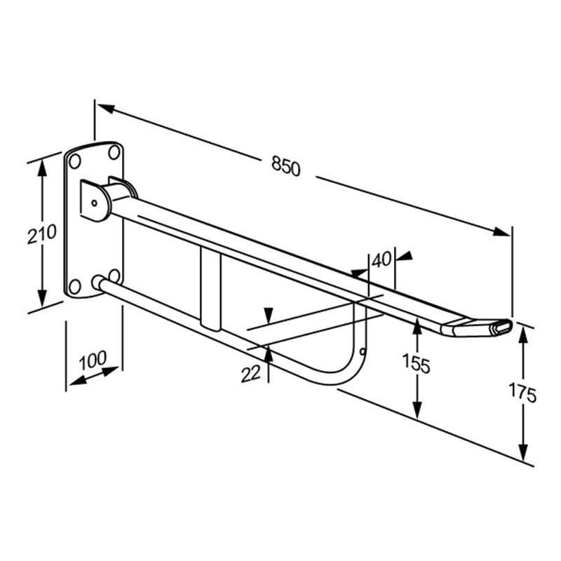 Lengte: 850 mm. Toiletsteun is opklapbaar