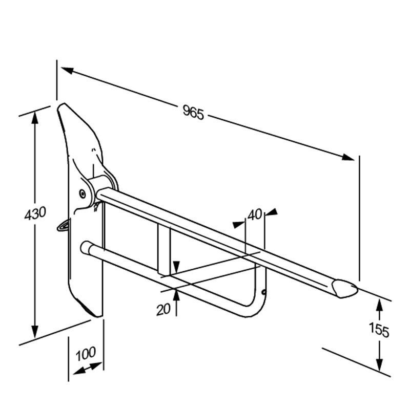 • VALUE toiletsteun, 850 mm, opklapbaar, in hoogte verstelbaar 150 mm zonder gebruik van gereedschap (linksbediening).