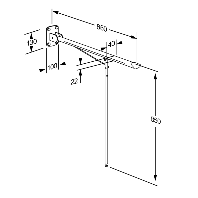 Lengte 850 mm. Toiletsteun is opklapbaar.