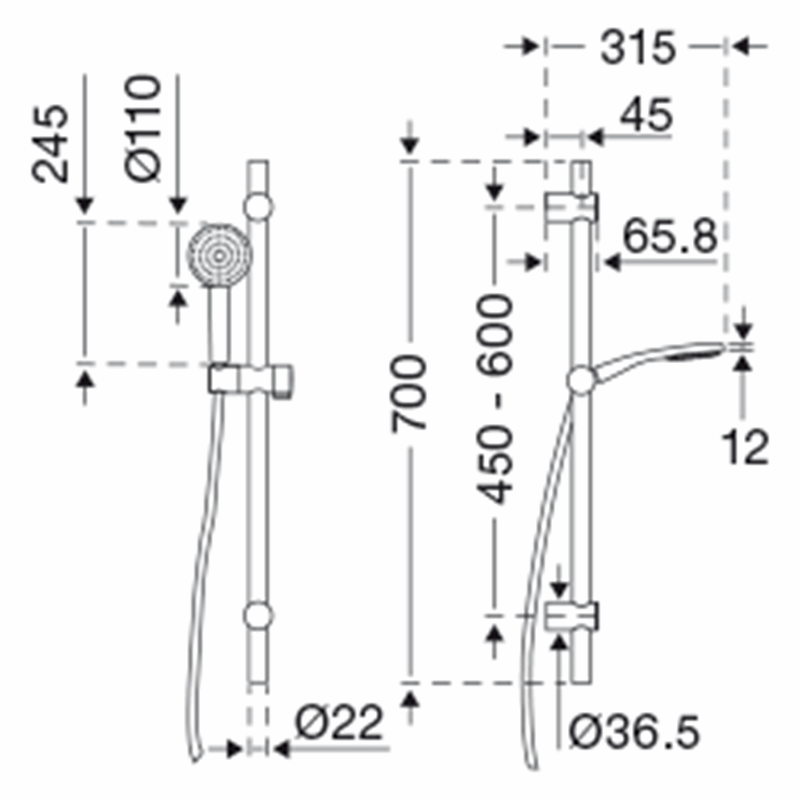 Justerbar duschset i krom med en stråltyp och vattensparfunktion som garanterar max 9 liter/minut. Rengöringsvänliga dysor och 5 års garanti.