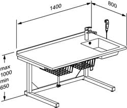 Skötbord, 800 x 1400 mm, elektrisk höjdreglerbart, med vask