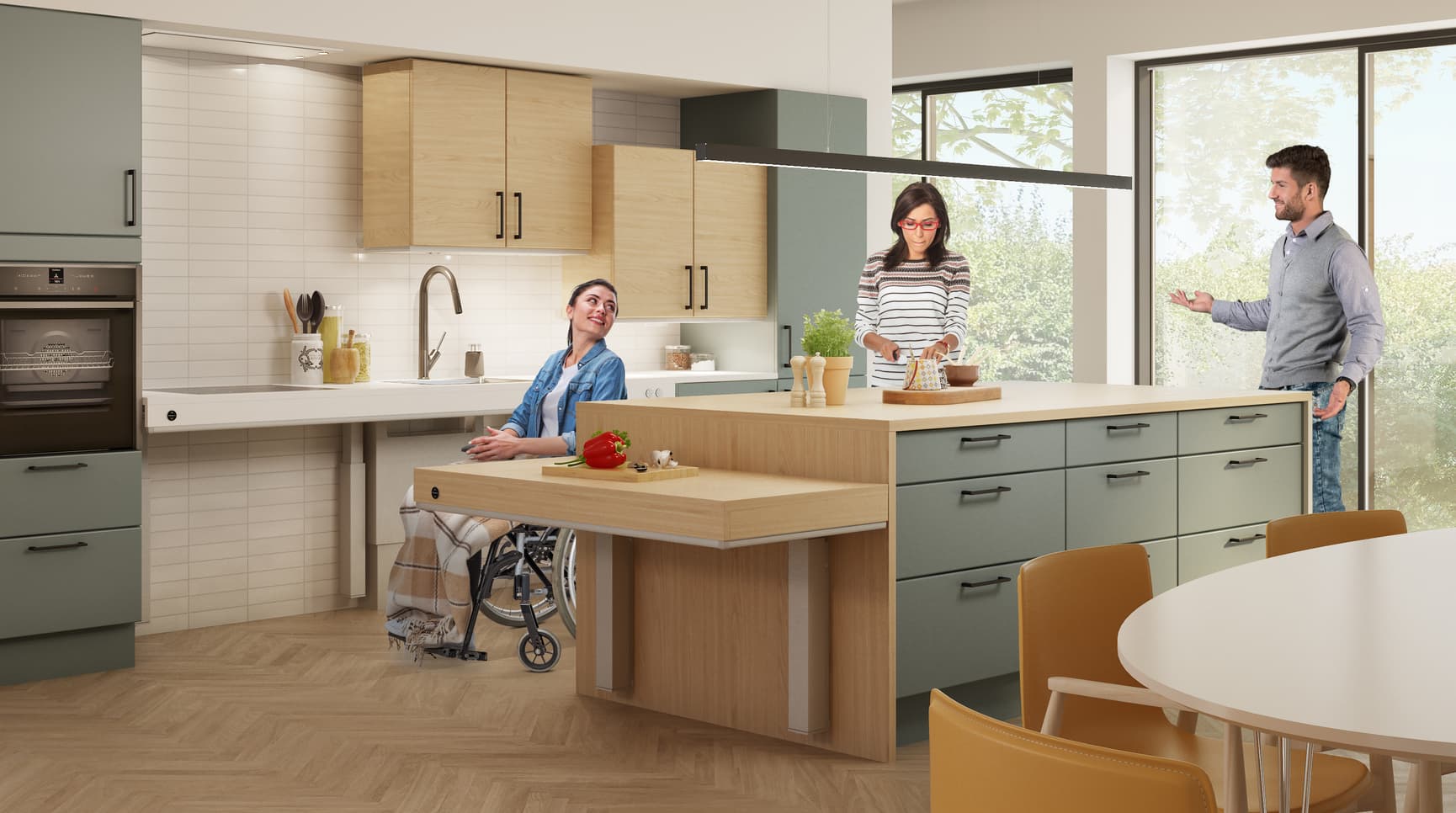 Living independently requires having solutions that support this in an optimal way. With a height adjustable kitchen, people of all ages and with or without special needs have the opportunity to actively take part in cooking and daily interactions in the kitchen - both at home, in schools, in care home facilities or in hospitals, just to name a few.